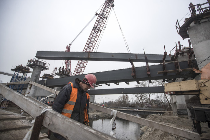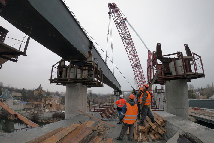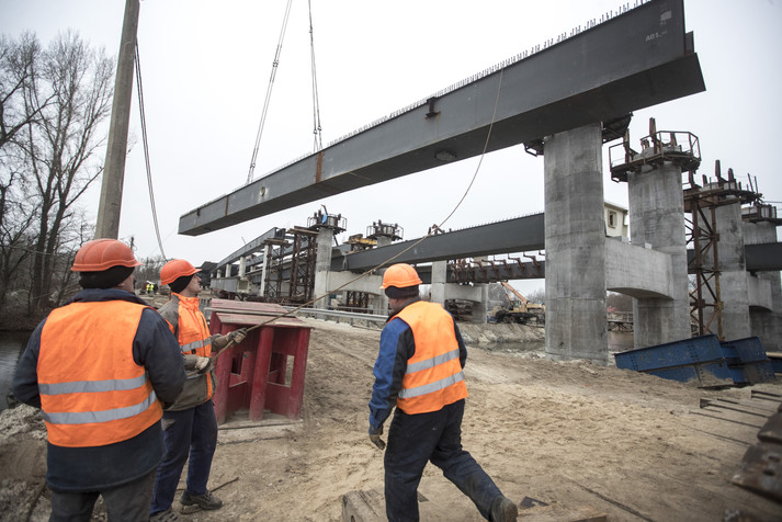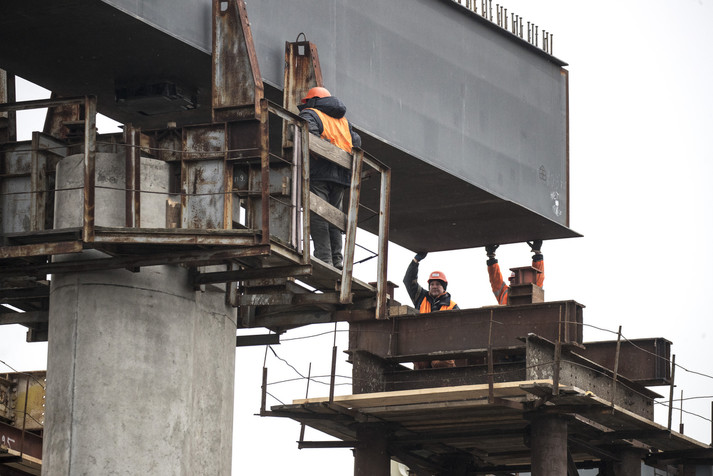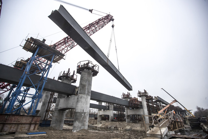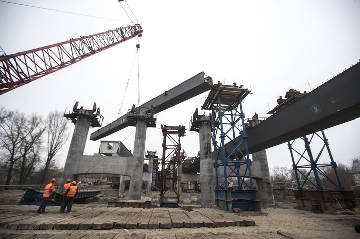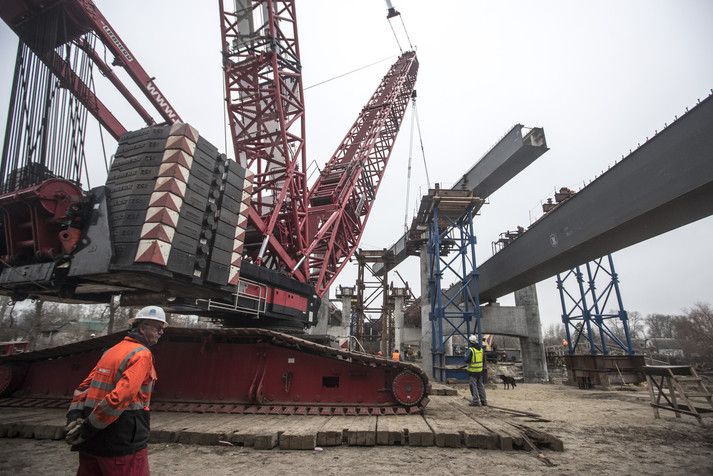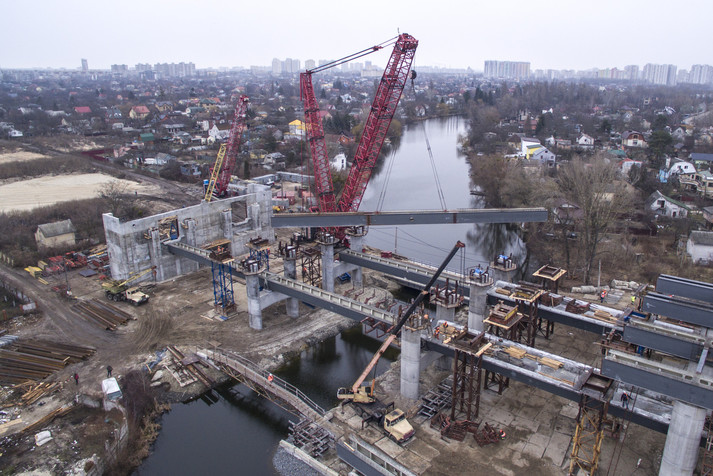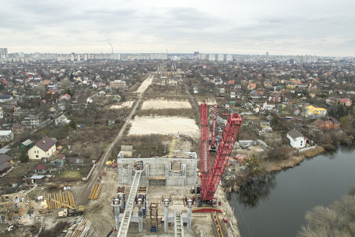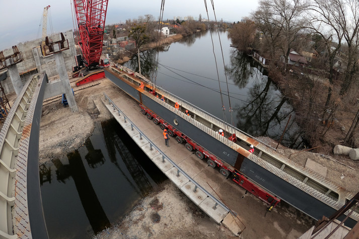 Подільсько-Воскресенський міст: встановлено перші балки над Русанівським озером (фото, відео)