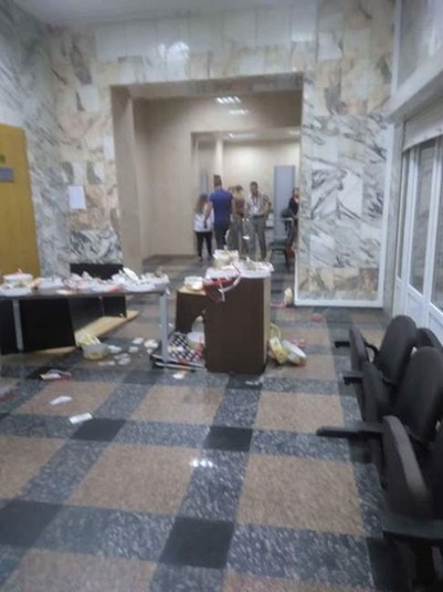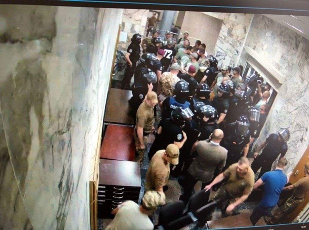 «У нас інформація, що туди не те, що ввірвалися і потрощили меблі, як пишуть деякі джерела... Туди підійшла група осіб, вони розмалювали табличку, яка на вході до будівлі висить, червоною фарбою і там кілька, точної кількості назвати не можу, осіб перебувають біля будівлі. Вони з плакатами з певними вимогами», - розповіли в столичній поліції.