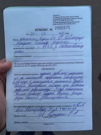 На місце було терміново направлено інспектора і складено протокол з приписом на Керуючу компанію Шевченківського району.