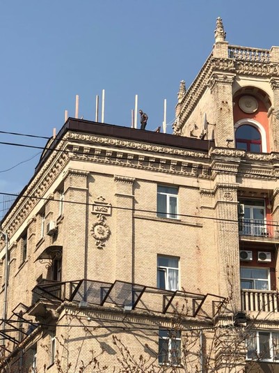 В той час, коли столична влада зосереджена на питанні запобігання поширенню коронавірусної інфекції, власник приміщення у будинку на вул. Софіївській, 1/2, який раніше звів незаконну надбудову, що потім демонтували міські служби, знову почав зводити конструкції з дерев’яних елементів.