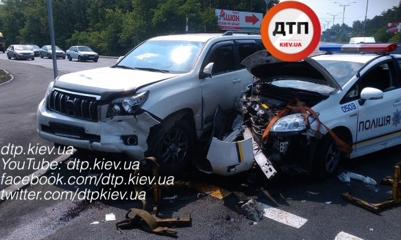 За попередніми даними, автомобіль поліції Тойота Пріус повертав ліворуч і не пропустив позашляховик Тойота, який рухався поруч.