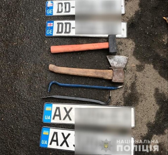 Під час невідкладного обшуку в автівці, на якій пересувались зловмисники, поліцейські виявили та вилучили сокиру, «ломики», мобільні телефони, різні державні номери іноземної реєстрації, візитки потерпілого чоловіка та інші речові докази, які вказують на їхню причетність до пограбування у с. Віта Поштова.