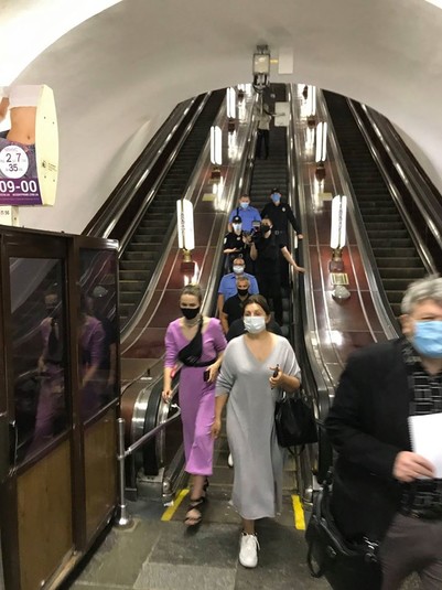 Вона зазначила, що на входах до станцій всі пасажири чемні, бо бачать представника поліції, охорону підземки, чують оголошення. Стягувати маски на підборіддя деякі пасажири починають уже на ескалаторі.