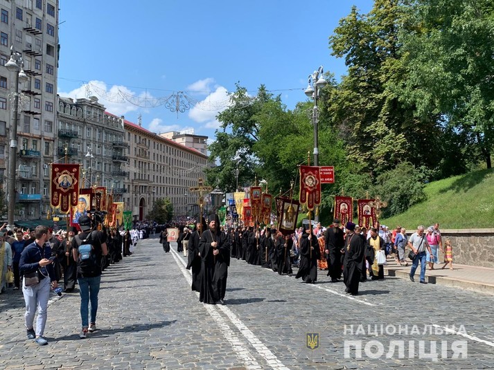 Для забезпечення громадського порядку під час хресного ходу залучені всі підрозділи київської поліції. Зокрема, на службу заступили спеціалісти вибухотехнічної служби, кінологи з собаками, спецпризначенці, а також співробітники превентивної комунікації.