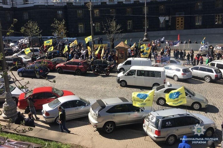 Наразі біля будівлі уряду відбувається акція водіїв автомобілів на єврономерах.
