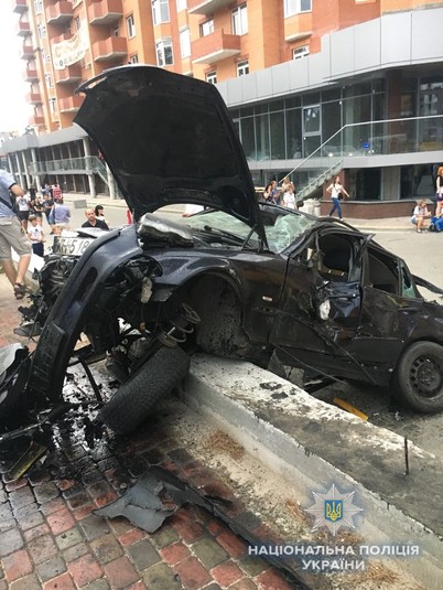 Нагадаємо, автомобіль BMW на єврономерах не впорався з керуванням та на чималій швидкості в’їхав у автобусну зупинку і зніс конструкцію. Також в результаті ДТП було пошкоджено три автомобіля і білборд.