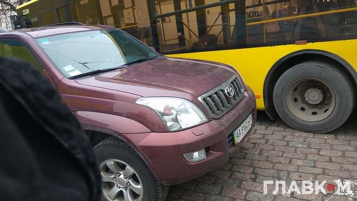 Обурені пасажири тролейбусів спустили колеса автомобіля.