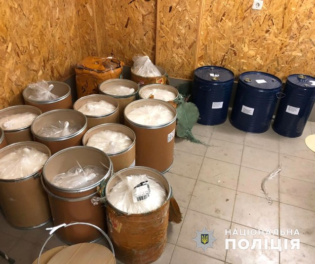 Загалом під час проведення обшуків у нарколабораторії та складських приміщеннях поліцейські виявили 630 кілограмів прекурсорів, яких достатньо для виготовлення понад 200 кілограмів метадону. Також виявлено кілограм готового метадону та лабораторне обладнання. Крім того, поліцейські вилучили пістолет, гранату та набої.