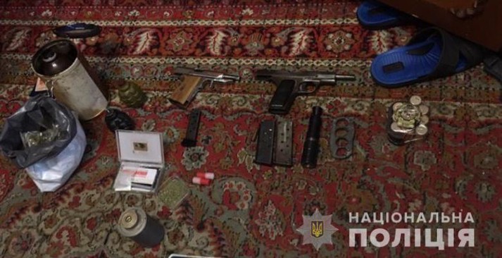 Крім того, у ході обшуку житла киянина у схованці поліцейські виявили: пістолет ТТ з двома спорядженими магазинами до нього без маркування та травматичній пістолет з ознаками переробки ЕРМА-75 Г, понад 500 набоїв калібру 5,45 мм та понад 100 набоїв калібру 7,62 мм, три корпуси гранати Ф-1, постріл гранатометний ВОГ-25 та металевий кастет. Також у чоловіка вилучили наркотичні засоби хімічного та рослинного походження у вигляді білого порошку та подрібнених суцвіть марихуани.