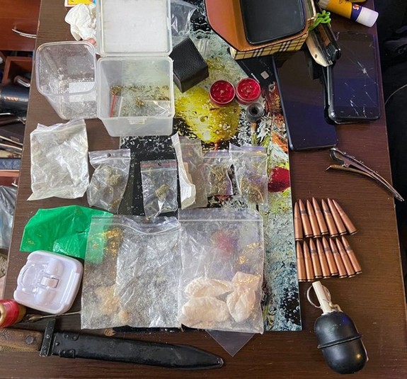 «У ході слідчих дій у квартирі, що на вулиці Симиренка, ми виявили та вилучили електронні ваги, сім поліетиленових пакетів з порошкоподібною речовиною, п’ять поліетиленових пакетів з речовиною рослинного походження, пристрої для подріблення та куріння канабісу, предмет, схожий на гладкоствольну зброю, 15 предметів, схожих на набої, багнет-ніж та страйкбольну гранату. Усі речі та речовини, які заборонені в обігу, направили на проведення експертизи. Киянина, 1983 року народження, затримали у порядку статті 208 Кримінального процесуального кодексу України», – розповів начальник відділу поліції №2 Шевченківського управління поліції Олександр Дибов.