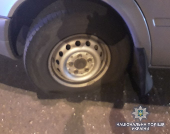 За словами заявника, четверо невідомих підбігли до буса і пошкодили вікна та колеса. При цьому ніби було чути постріли.