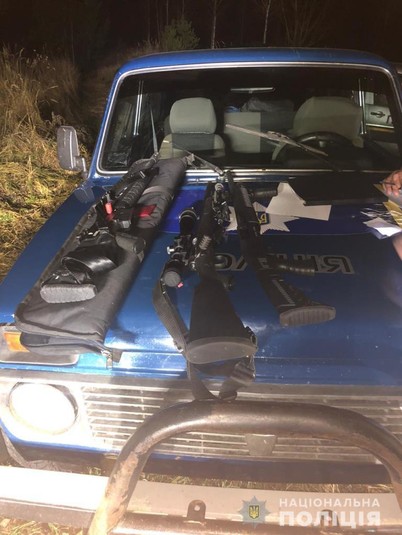 Бійці батальйону патрульної поліції спільно з прикордонниками за повідомленням працівників охорони тваринного світу чорнобильського радіаційно-біосферного заповідника в районі відселеного села Володимирівка виявили мисливців-порушників зі зброєю в руках.