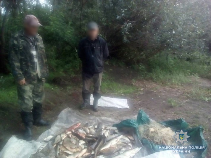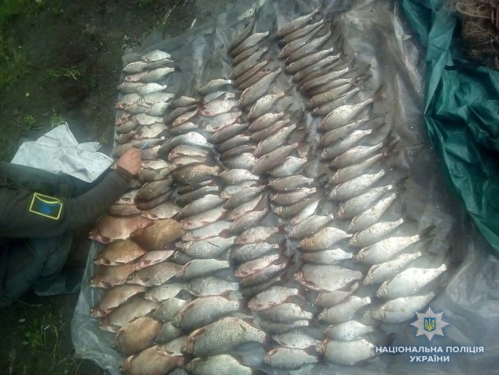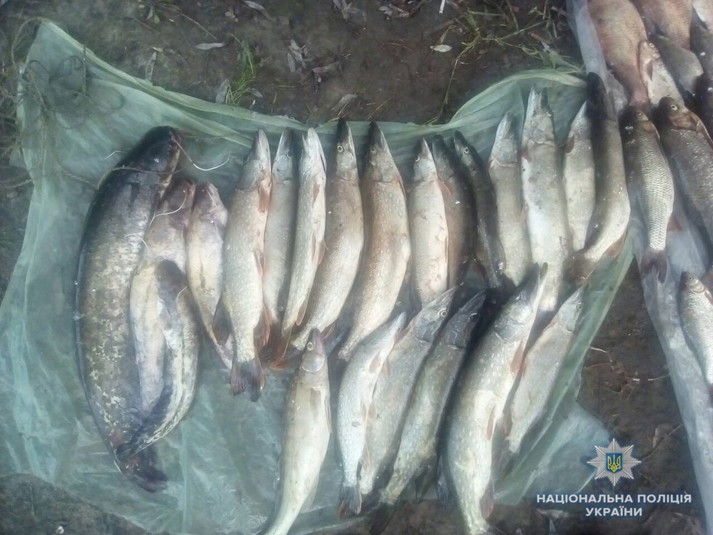 На місці правопорушення працівники поліції вилучили 2 човни, 3 сітки різного діаметру та рибу: щука, сом, лящ. Поліція оцінює вилучену рибу приблизно у 20 тисяч гривень.