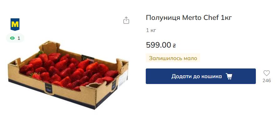 Для тих, хто звик до преміального сегмента, у Metro представлена полуниця власної марки Metro Chef. Тут ціна рекордна – 599 грн за кілограмову упаковку.