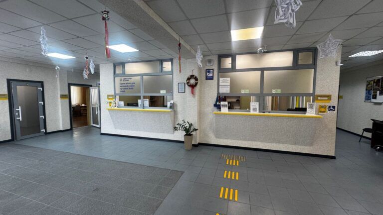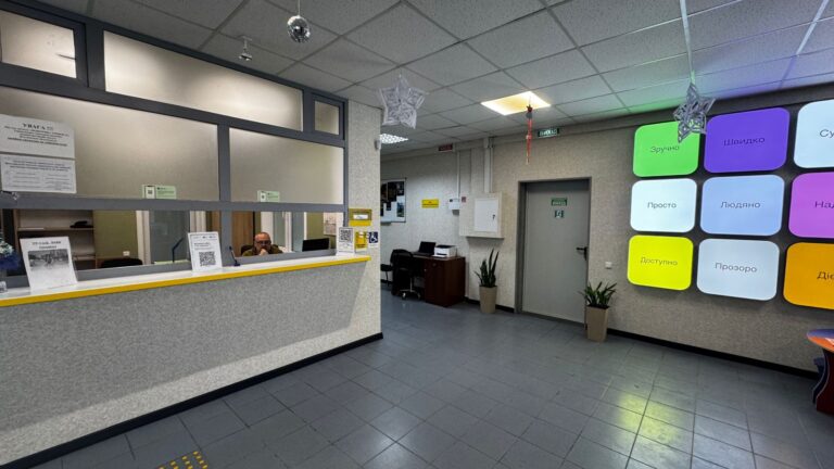 - Для людей з порушеннями опорно-рухового апарату: встановлено пандуси, розширено дверні отвори, облаштовано поручні в санітарних кімнатах та адаптовано стійки прийому для відвідувачів на кріслах колісних чи з милицями.