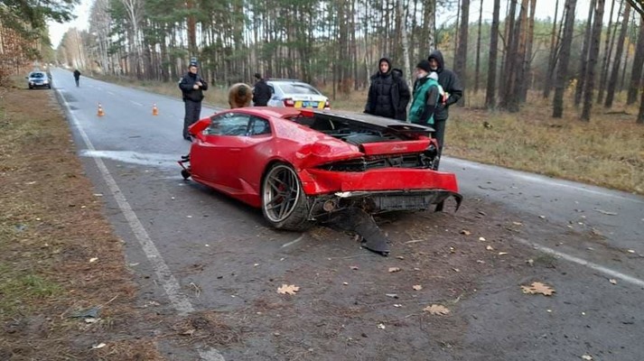Посеред лісу на Київщині розбився спорткар Lamborghini (фото)