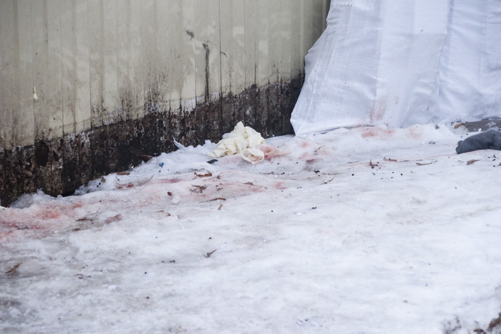 На вигляд чоловікові 30-35 років. Тіло лежало біля МАФів. Коли на місце прибули патрульні, загиблий не подавав ознак життя. Вони побачили сліди крові і викликали слідчо-оперативну групу. При огляді на тілі були виявлені ножові поранення. Попередньо, експерти нарахували 5-6 поранень. Точну причину смерті визначать патологоанатоми.