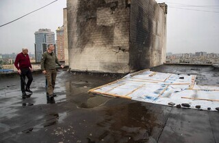 Мер столиці оглянув житловий будинок в Оболонському районі, пошкоджений внаслідок ворожої атаки в ніч на 4 травня. Через влучання дрона у дах будівлі, на останньому поверсі зайнялася квартира. В ній частково пошкоджене перекриття та вигоріли одна кімната й коридор.