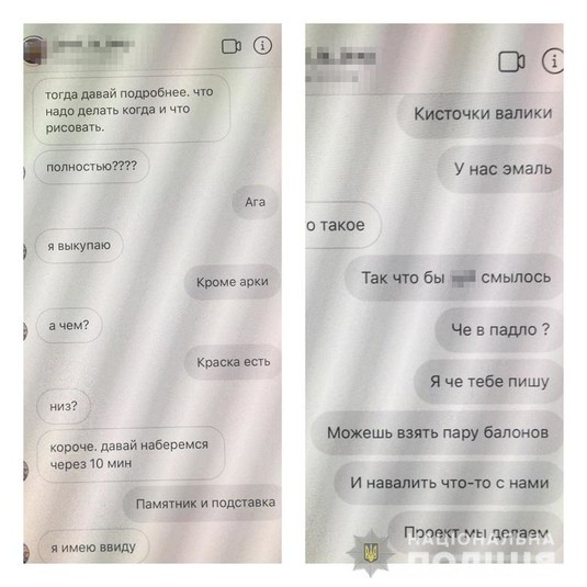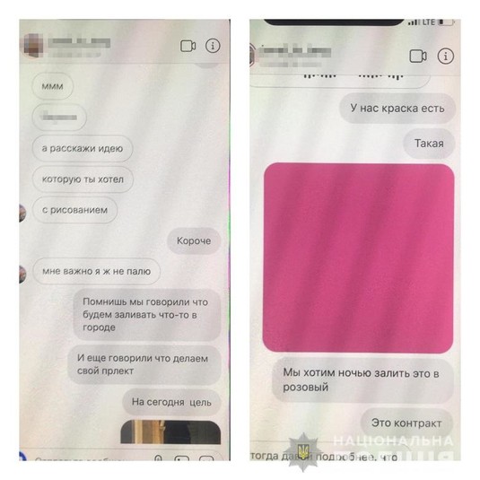 Прибувши на адресу, правоохоронці побачили невідомих осіб, які почали тікати. Одному із них втекти не вдалося – його затримали. При собі він мав ємність із речовиною, схожою на фарбу, та пензлики. Згодом юнак повідомив поліцейським імена своїх товаришів.