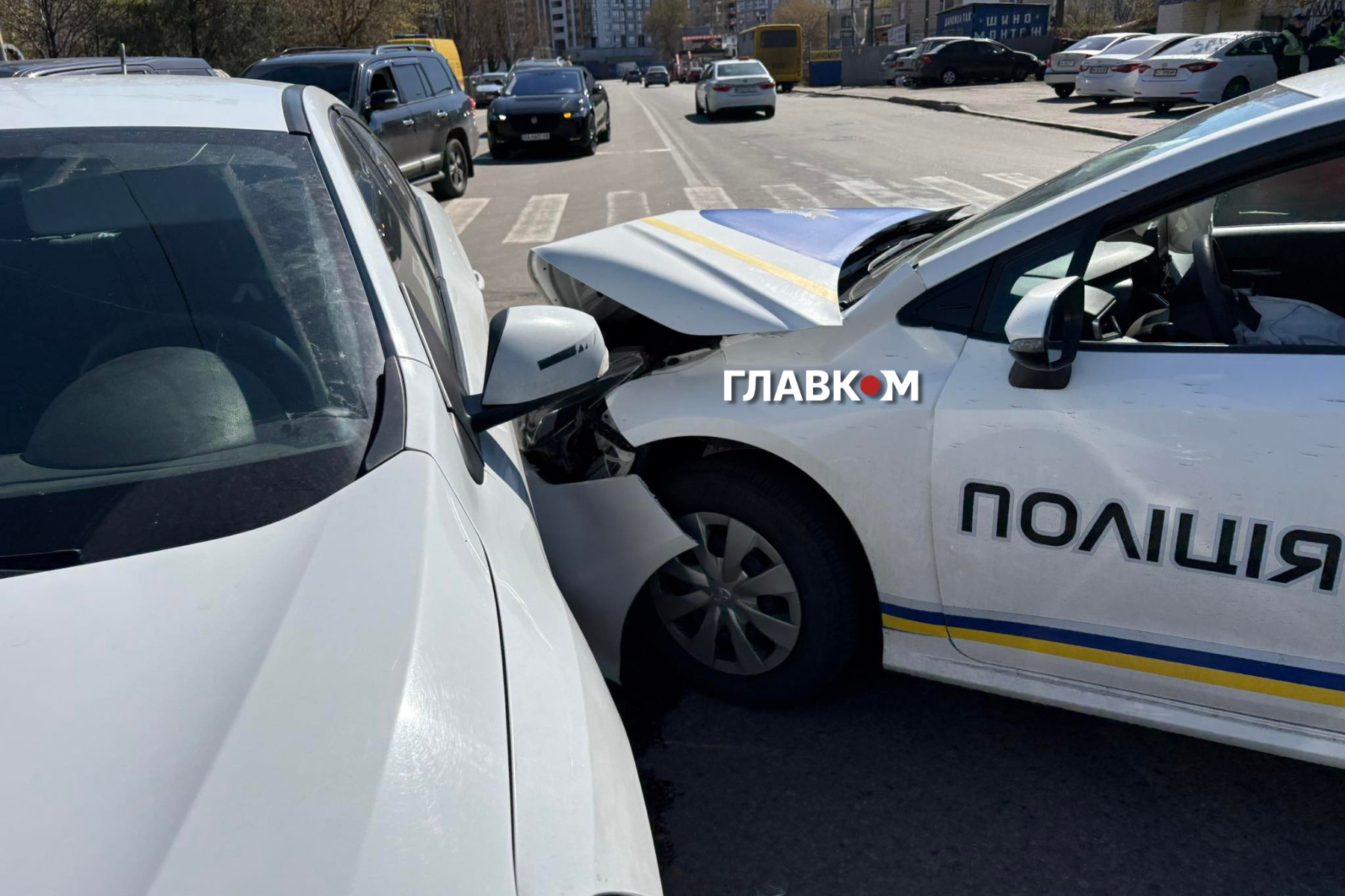 Сьогодні, 4 квітня 2026 року, на лівому березі столиці сталася дорожньо-транспортна пригода за участю трьох автомобілів. Про це повідомляє кореспондент «Главкома» з місця події.