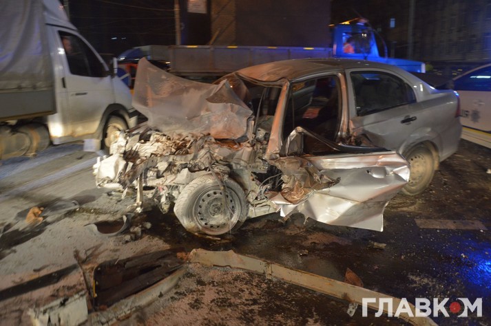За попередньою інформацією, водій на високій швидкості їхав зі сторони станції метро «Почайна» у бік станції метро «Шулявська». У певний момент він не впорався з керуванням, врізався в Fiat, потім в Mitsubishi, а потім в маршрутний автобус «Богдан». На фото видно, що маршрутний автобус також сильно постраждав. Легковик просто зніс йому задні двері та задню частину.