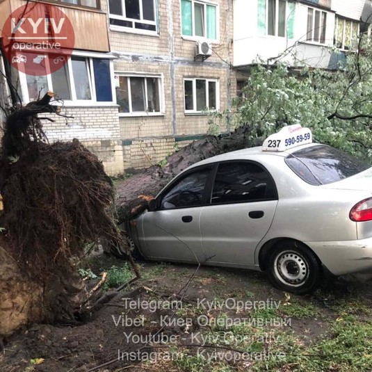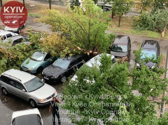 Повалені дерева, побиті автівки: негода наробила шкоди в Києві (фото)