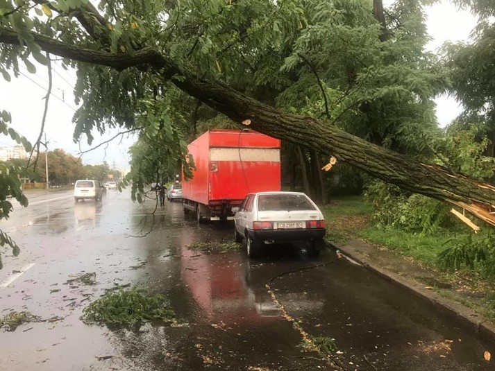 Як повідомлялося, сьогодні, 8 серпня, близько 15-ї години у Києві пройшла сильна гроза з ураганним вітром. Шквали вітру сягали 25-28 м/с (ІІ рівень небезпеки, помаранчевий). Негода зачепила в основному лівий берег міста.