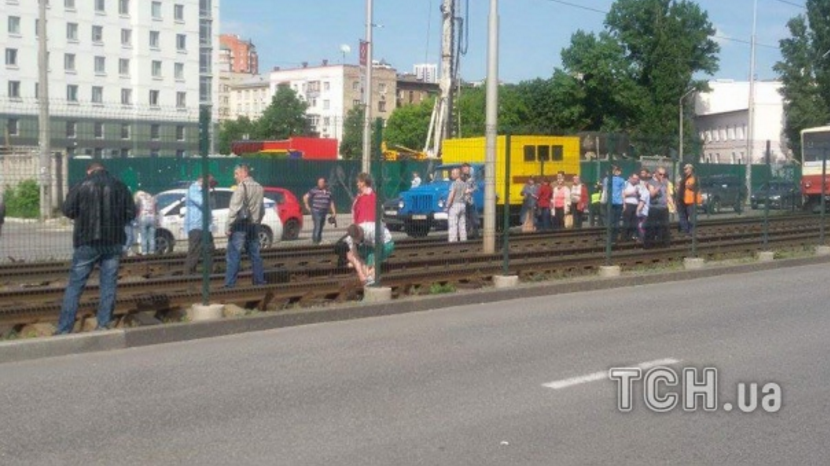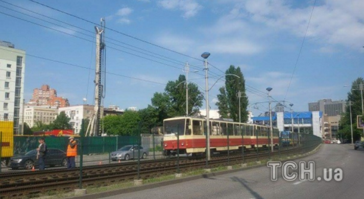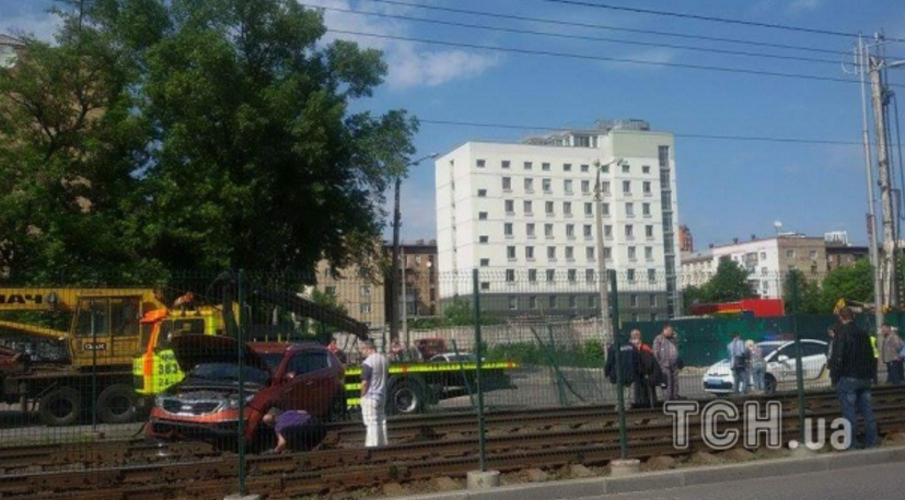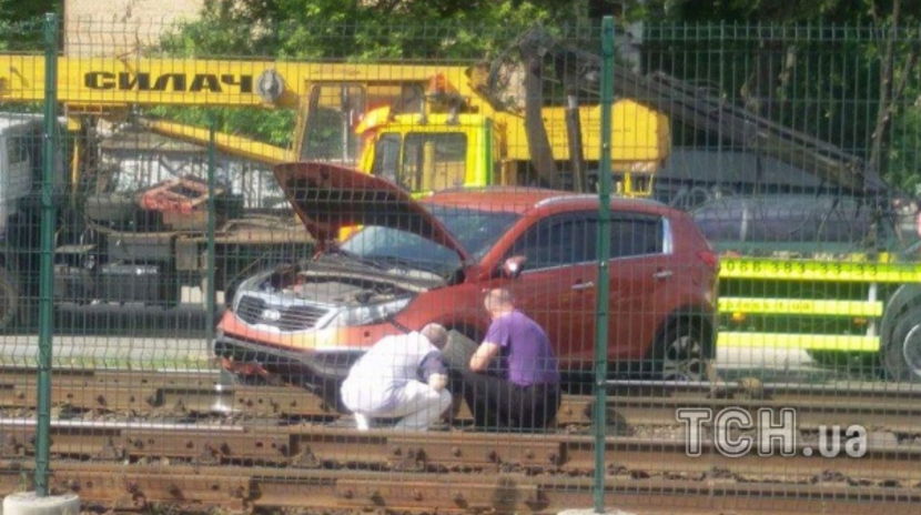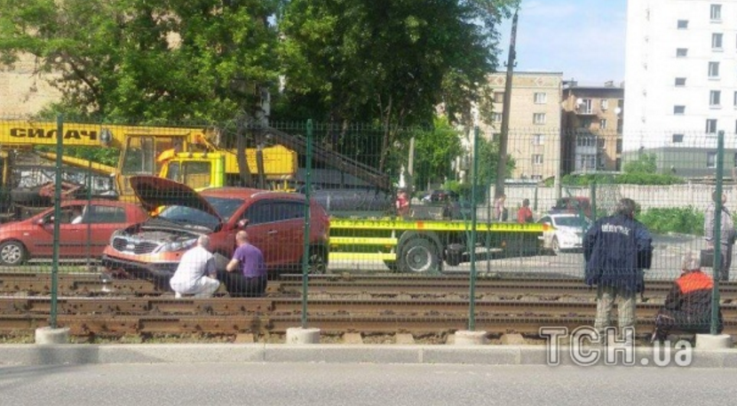 У Києві позашляховик КІА Shortage збив огорожу та вилетів на колію швидкісного трамваю.