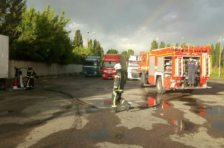 «По прибуттю до місця виклику розвідкою було встановлено, що вогнем охоплено резервуар з дизельним паливом об'ємом 10 куб. м на площі 10 кв. м та кабіна оператора. Пожежу локалізовано о 05:57 та повністю ліквідовано о 06:32», - йдеться в повідомленні.