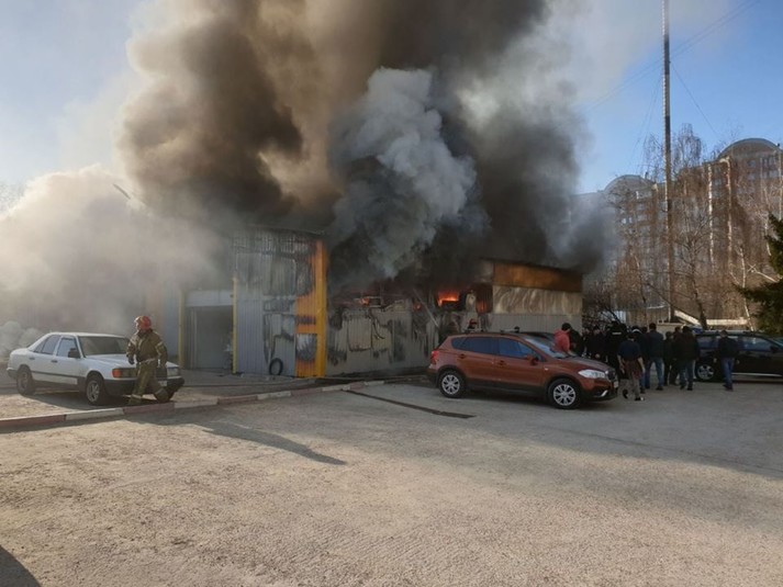 На місце події було направлено найближчі пожежно-рятувальні підрозділи. По прибуттю вогнеборці встановили, що займання виникло в 1-поверховому металевому ангарі із загрозою розповсюдження полум`я на поруч розташовану офісну будівлю, з якої бійці вивели на безпечну відстань 40 осіб.