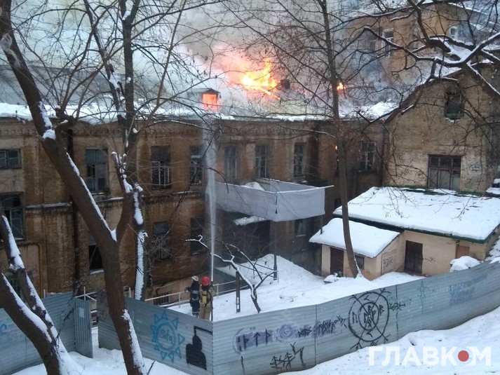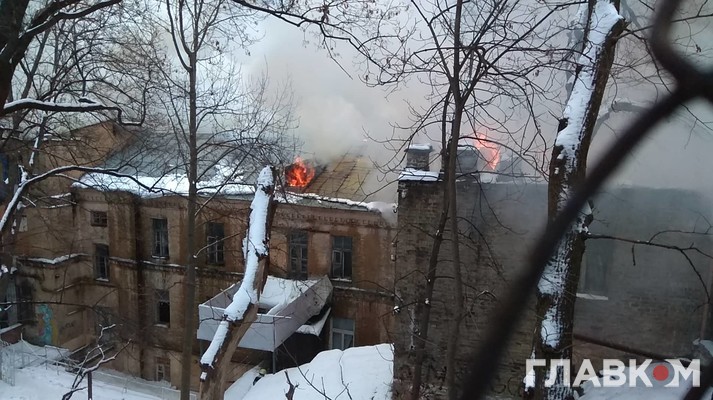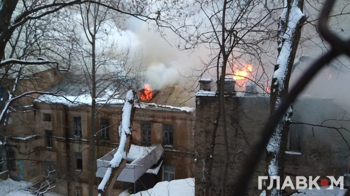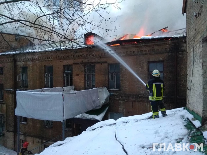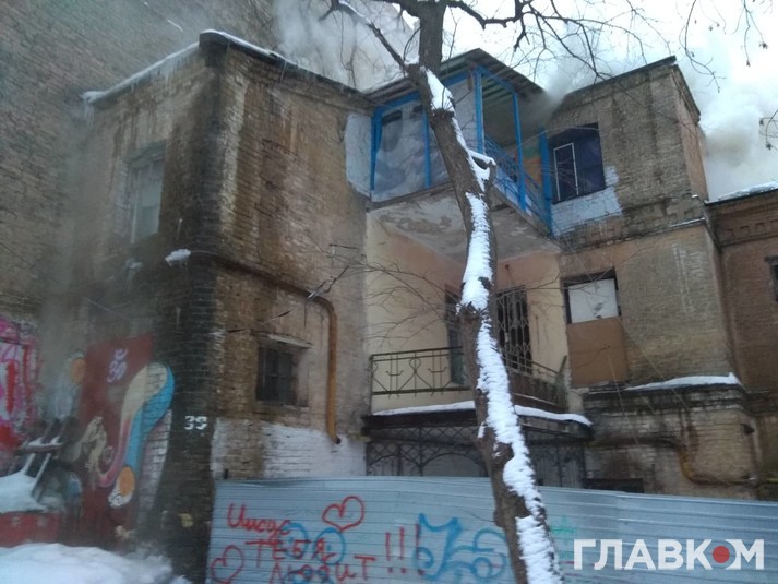 Як повідомлялося, пожежа виникла у старовинній будівлі на вул. Грушевського, 4б. Це стародавній особняк роботи відомих київських архітекторів В. Ніколаєва, О. Шварценберга, пам‘ятка місцевого значення. Пожежа в ньому виникає вже не вперше.