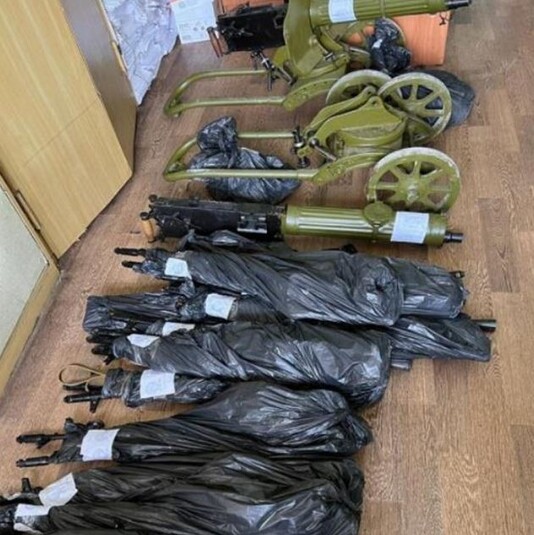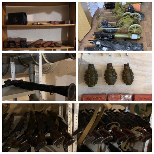 «У ході санкціонованих обшуків вилучено 29 автоматів «АК-74», 32 споряджених магазини до них, гранатомет, кулемет «Дегтярьова», 2 кулемета «Максим», 3 пістолети, 9 тротилових шашок загальною вагою