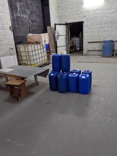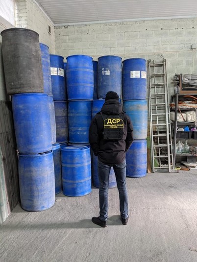 Правоохоронці провели чотири санкціоновані обшуки та вилучили понад 2,7 тис. л спиртовмісних речовин, пакувальну тару, а також обладнання для виготовлення та розливу фальсифікату.