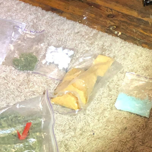 У подальшому, у ході проведення невідкладного обшуку за місцем проживання останнього, виявлено та вилучено ще близько 1,5 кг кристалоподібної речовини жовтого та синього кольору, а також 2,5 кг речовини рослинного походження, 100 г білої порошкоподібної речовини, пігулки рожевого кольору, пакети з пазовим замком та ваги.