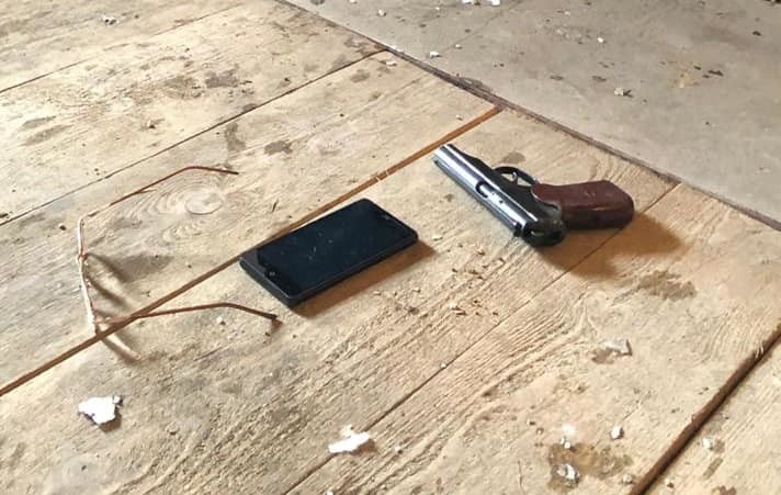 Під час затримання, окрім грошових коштів за викрадення потерпілого, у батька вилучили пістолет Макарова, мобільний телефон, а також пенсійне посвідчення колишнього співробітника ГУ СБУ в Донецькій області.