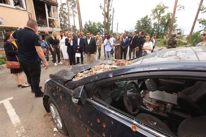 Міський голова передав йому презентацію руйнувань міста та попросив допомоги у відбудові зруйнованого житла, шкіл та дитсадків.