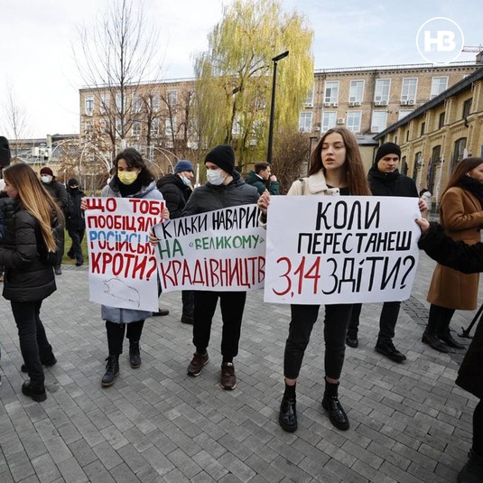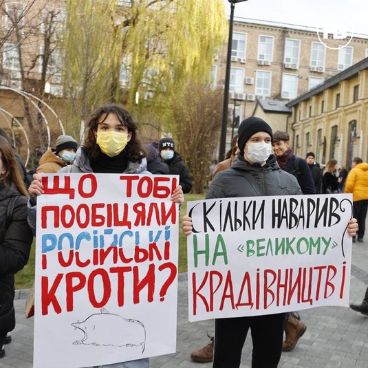 Під місцем проведення пресконференції Зеленського зібралися протестувальники