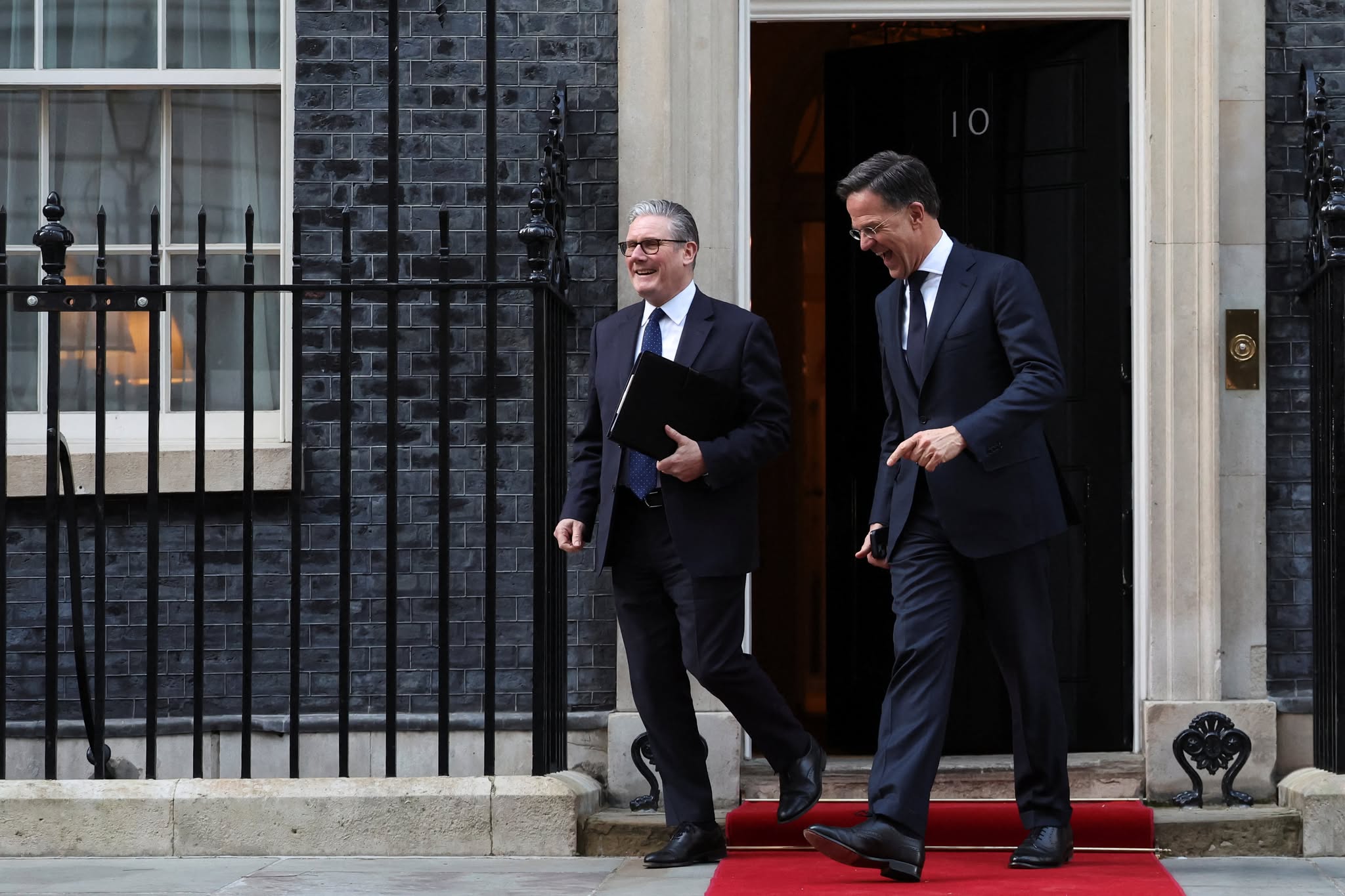 Кір Стармер і Марк Рютте йдуть з Даунінг-стріт, 10