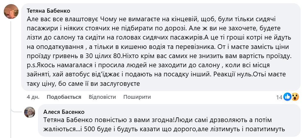 Підвищення тарифів викликало активне обговорення серед мешканців передмістя. Основна претензія пасажирів стосується не лише самої ціни, а й відсутності конкуренції. У мережі зазначають, що попри багаторічне розширення міста, влада так і не спромоглася запустити комунальний автобусний маршрут до Києва, що залишає приватних перевізників фактичними монополістами на ринку.