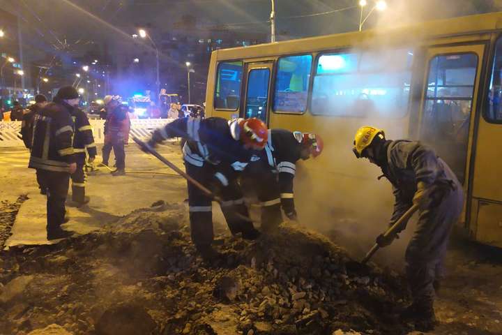 З маршрутного таксі, а також тролейбусу, що опинився в паровій завісі, було винесено семеро людей