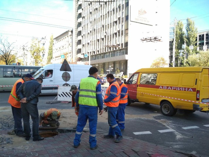 Раніше повідомлялося, що на вулиці між станціями метро «Олімпійська» та «Палац спорту» у центрі Києва стався прорив труби з гарячою водою.