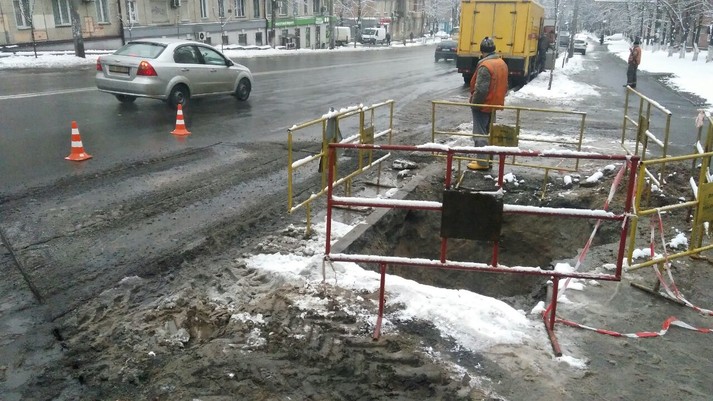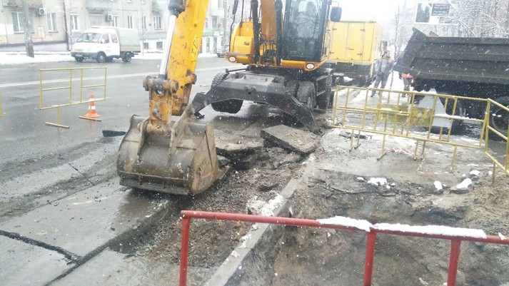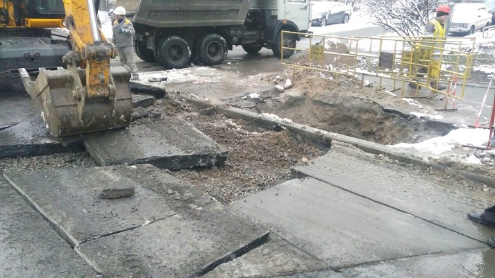 У результаті аварії на інженерних мережах на проїжджій частині утворилась просадка асфальтобетонного покриття. Бригада робітників ПАТ «Київенерго» виконала розриття проїжджої частини з метою ліквідації прориву трубопроводу.