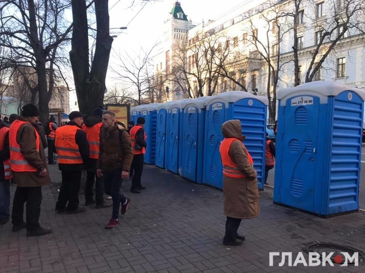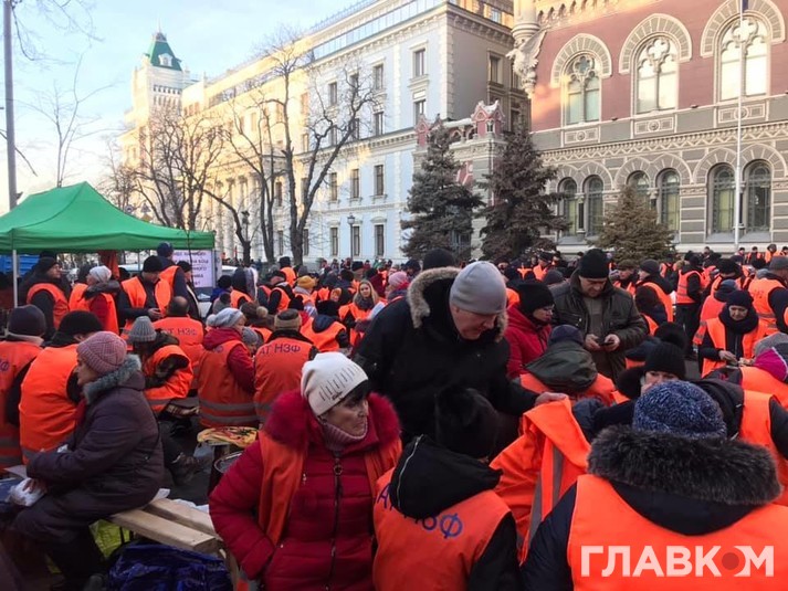 Варто зазначити, що під Нацбанк цих мітингувальників звозять ще з середини листопада. Більшість із них – люди літнього віку. Вони займають тротуари і проїжджу частину вулиці Інститутської біля будівлі НБУ. На тротуарах для них організатори акції встановили біотуалети, біля яких стоїть сморід і після мітингу лишаються купи сміття.