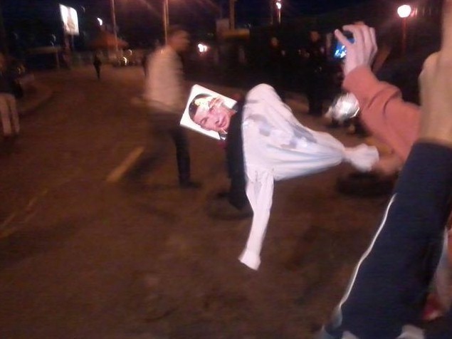У свою чергу, мітингувальники принесли з собою і спалили опудало градоначальника, вимагаючи особистої зустрічі з ним.