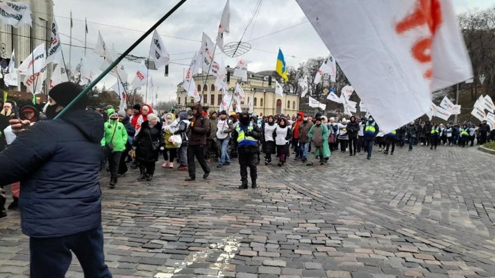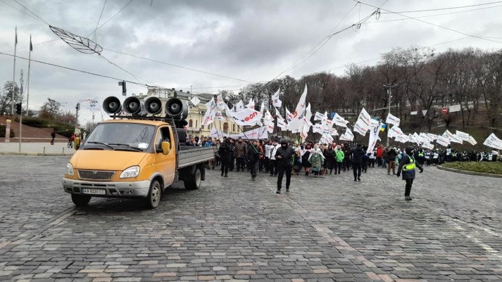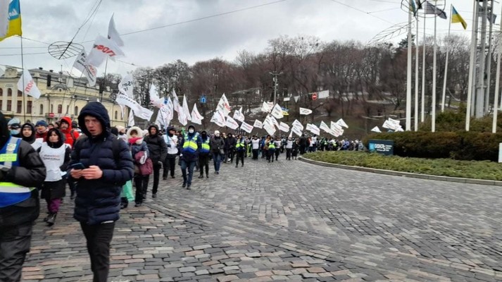 Учасники акції протесту підприємців вирушили від Верховної Ради до Офісу президента.