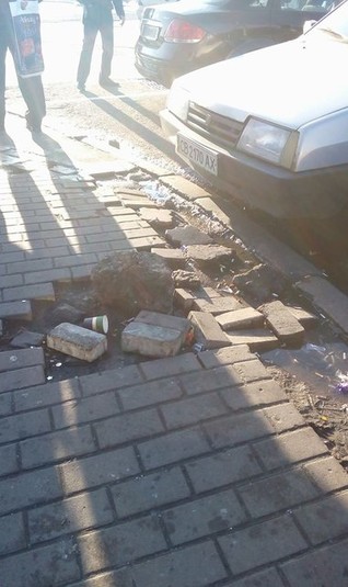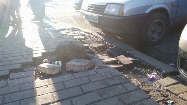 «Люди проходили біля неї з великими сумками, ризикуючи впасти вниз, а водії автомобілів могли запросто потрапити в пастку, якби частина ями завалилась. Вона тут утворилася ще влітку після сильних дощів», - розповіла продавчиня.