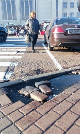 У «Київавтодорі» повідомили, що будуть з'ясовувати, у кого на балансі перебуває ця частина тротуару, і, якщо це територія їх дорожньо-експлуатаційного управління, обіцяють провести там ремонт.