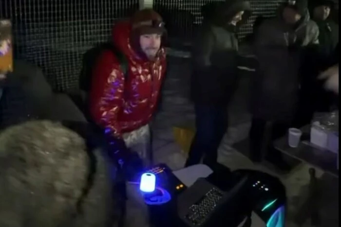 На опублікованих кадрах видно, як десятки мешканців кварталу, переважно молодь, зібралися навколо діджейської установки. Люди в теплих куртках і шапках ритмічно рухаються під музику, тримаючи в руках термоси з чаєм.