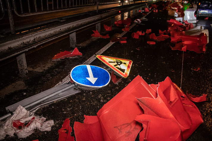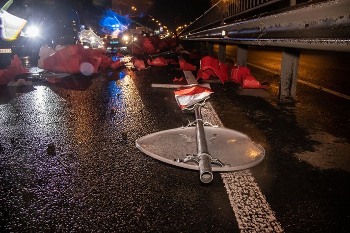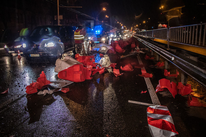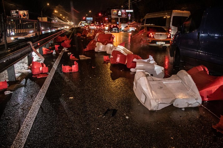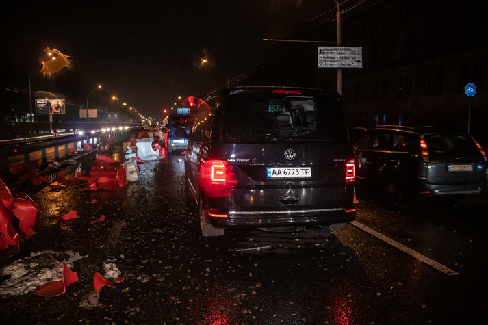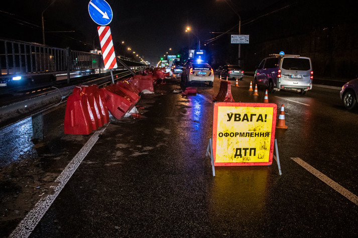 За попередніми даними, водій мікроавтобуса білого кольору на великій швидкості рухався в крайній лівій смузі проспекту Перемоги в бік центру. Недалеко від перетину проспекту Перемоги з вулицею Гарматною, чоловік за кермом мікроавтобуса не помітив пластикові відбійники, які встановили через ремонт Шулявського моста, і влетів в них. Машина збила близько 30-ти метрів огорожі і дорожні знаки. Відірвані частини відбійників пошкодили автомобілі Volkswagen Multivan і Renault Trafic, які рухалися в сусідній смузі.