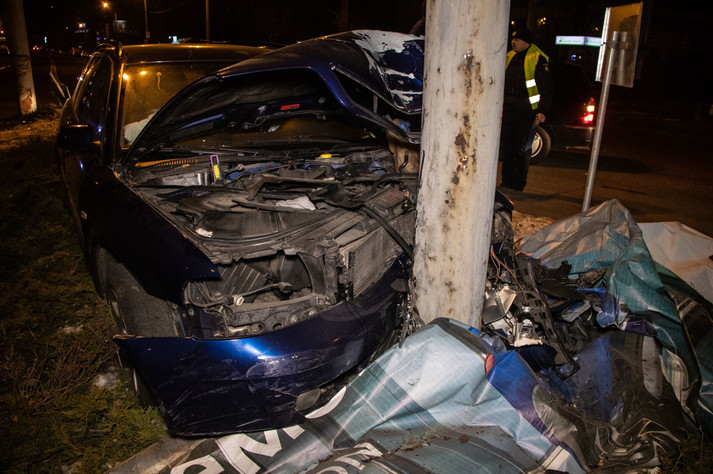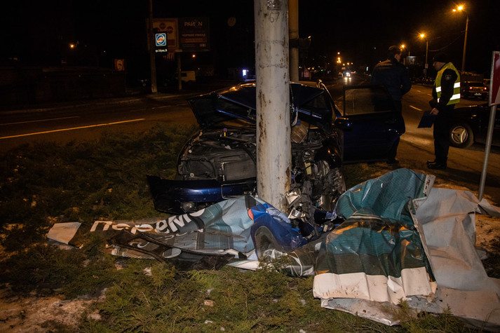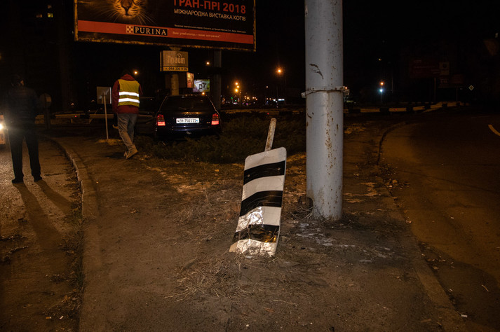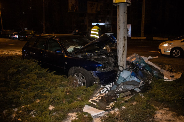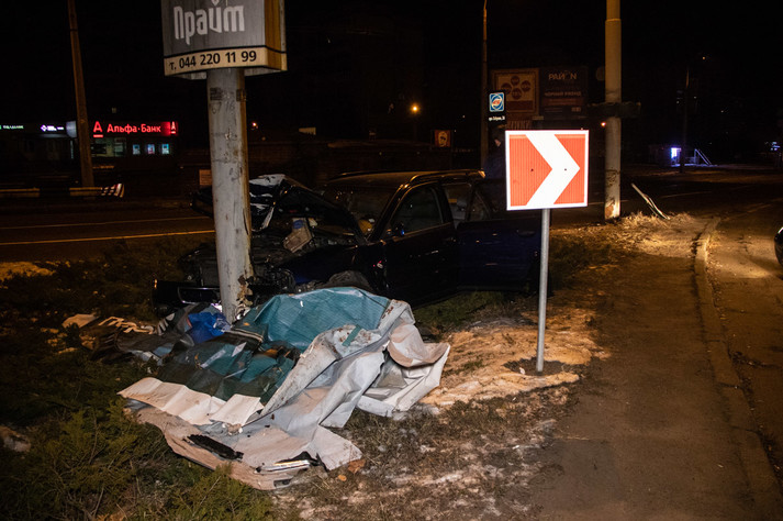 П’яна ДТП на Троєщині: Audi влетіла у білборд (фото, відео)